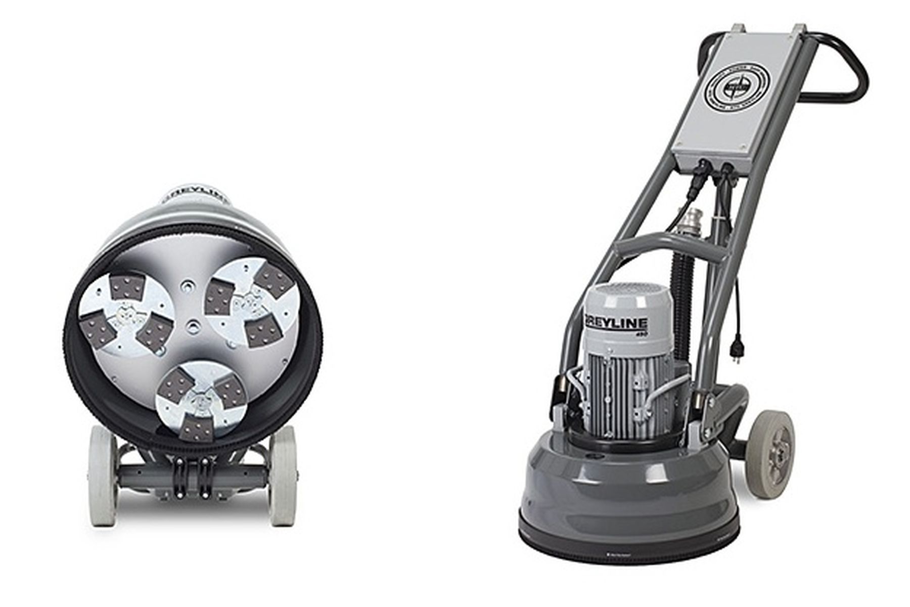 De HTC Greyline 450 vloerschuurmachine is geschikt voor zowel vloervoorbereiding als het schuren van beton. De drie schuurkoppen worden ondersteund door een tegengesteld draaiend schuurwiel. Hierdoor is de machine zeer stabiel, zonder neerwaartse krachten uit te oefenen.
